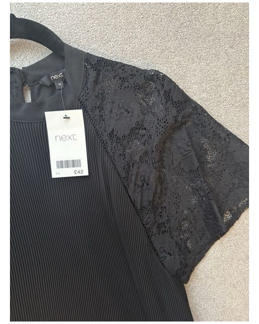 Next pleated dress Black with lace sleeves Size 14 New with tags From a smoke & pet free home