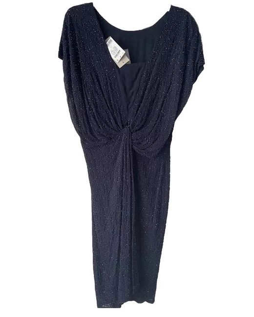 Tiny sequin beads dress with cap sleeves and boat neck design Back of dress is draped cross style with a tail look Ruching to the back of dress