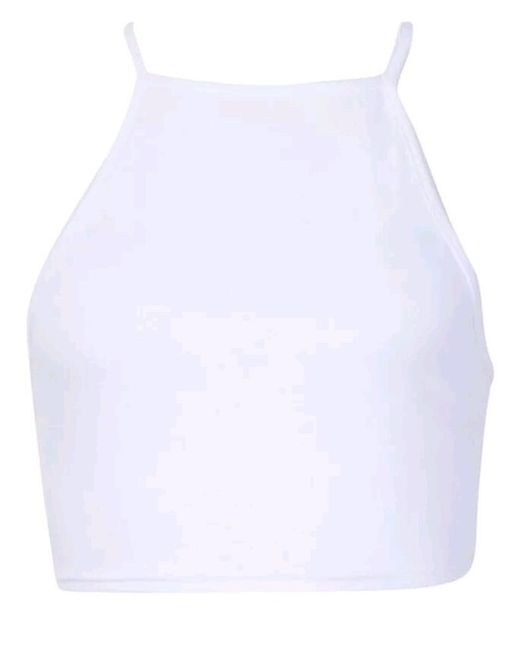 Boohoo White Basic Petite High Neck Cross Back Crop Top. UK 14. New. White Petite for under 5ft 3, Cropped, Spaghetti Straps, High Neck, Criss Cross back, Machine Wash, 95% Viscose, 5% Elastane. Boohoo doesn't do exact Size Measurements, Please use photos to judge sizing. UK Seller. Please see my other items. Free post or collection. Multi buys in the same postal package will be offered a discount. Pretty Unique 1