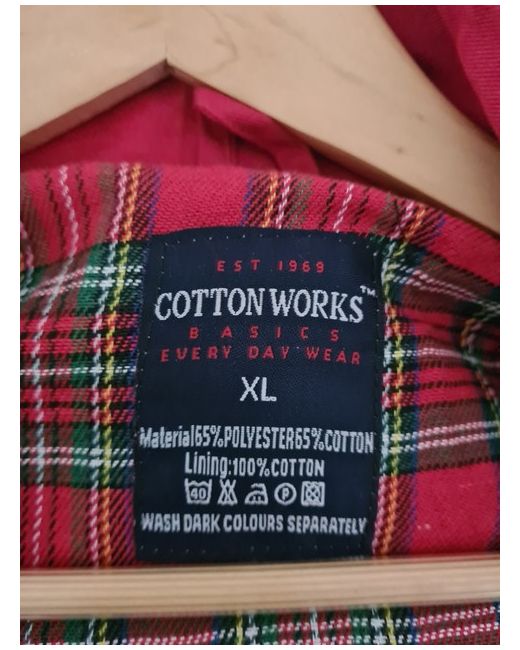 The Cotton Works unisex jacket in size XL features a classic bomber jacket style in a bold red colour. Made from cotton, this short-length jacket is perfect for both men and women looking for a casual yet stylish outerwear option. The regular fit and cotton lining ensure comfort and a versatile addition to any wardrobe. Whether you're running errands or meeting friends for a casual outing, this jacket is a fashionable choice for any occasion.