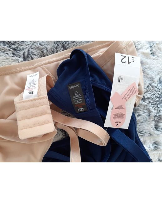 This product is a set of two sleek and smooth non-wired microfibre+mesh bras in beige and navy, size 38D. The bras feature a normal strap, hook & eye closure, and are machine washable. Made from a blend of polyester, polyamide, cotton, and elastane, they offer full coverage, lightweight support, and adjustable straps. Perfect for everyday wear, these bras provide comfort and style without sacrificing the support needed for a comfortable fit. Ideal for women looking for practical and comfortable lingerie options. New With Tags. Dispatched With Royal Mail Tracked 48 plus 20p packaging.