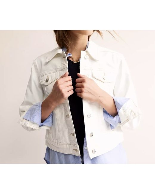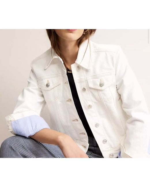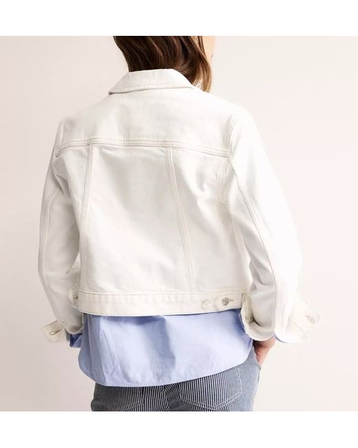 This Boden jacket is perfect for any fashion-forward woman. The timeless ivory colour and rigid denim fabric make it a versatile addition to any wardrobe. It features a classic design with a basic jacket style and is made from 100% cotton, ensuring comfort and durability. In a timeless style that layers over everything, this denim jacket from Boden sits at the hip for versatile coverage. Framed with a collar neckline, it is made from a comfortable cotton blend. The jacket is a size 6, but it can fit a size 10 as well. The brand is Boden and it is a regular size type. The outer shell material is denim, and it comes in an elegant ivory colour. This jacket is a great choice for any occasion, and it will be a stylish addition to your wardrobe.