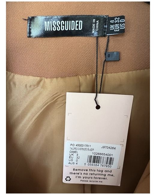 Introducing a stylish and trendy women's jacket from Missguided. This camel-coloured jacket is made of a high-quality blend of polyester and elastane, ensuring maximum comfort and durability. It features a button-up design, making it perfect for any occasion, and is lined with polyester for added warmth. This jacket is a size 4 and is perfect for women who want to make a fashion statement while staying comfortable. It is a basic jacket with a unique style that will make you stand out from the crowd. Missguided is a well-known brand, and this jacket is a testament to their quality and style. Available for local pickup from Acle,Norfolk Thanks for looking