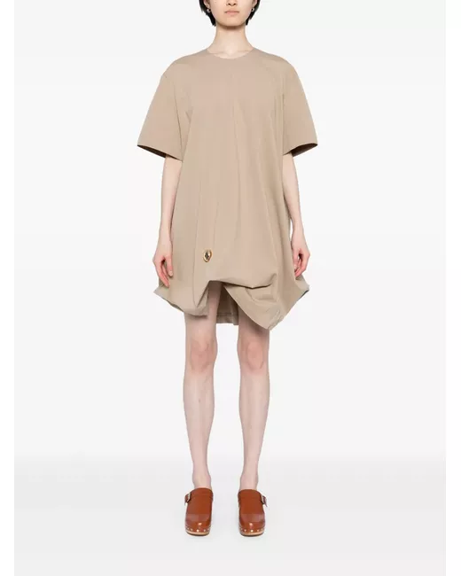 beige press-stud fastening to the rear two side inset pockets brooch detail