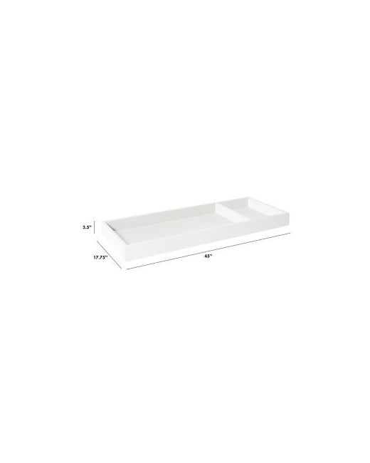 Features Convert your dresser into a convenient changing table with the Universal Wide Removable Changing Tray Comes with a smaller compartment to keep baby changing necessities close at hand As child outgrows its functionality as a changing station, the tray and included safety brackets can be easily removed to reclaim the space on top of the dresser Universal fit converts most standard double-dressers and table tops into changing areas Made with New Zealand pine wood and Tsca-compliant Mdf Finished in non-toxic, multi-step painting process that's lead- and phthalate-safeSpecifications Suitable for children up to 30 lbs. Compatible with the following (sold separately): Palma 7-Drawer Double Dresser, 31" x 16" Contour Changing Pad (M5319) Manufacturer's 1-year warranty
