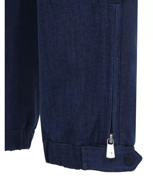 navy blue elasticated drawstring waistband two side slit pockets rear zip-fastening pocket ankle zips
