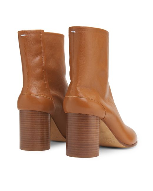 Crafted of smooth supple leather, these iconic split-toe Tabi boots feature a cylindrical heel and a contrast white stitch at the back. Leather upper Square split toe Pull-on style Lining: Calf leather Calf leather sole Made in Italy SIZE Leather-covered cylindrical heel, 3.25" (80mm). Women's Shoes - Designer Womens Shoes > Maison Margiela > Saks Fifth Avenue > Barneys. Maison Margiela. Color: Light Brown. Size: 6.