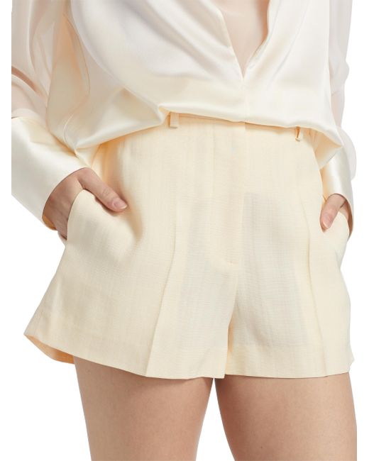 These tailored shorts from Helmut Lang are designed with pressed creases and a slightly flared silhouette. Belt loops Side-seam pockets Back welt pockets Concealed zip fly, hook-and-bar closure 100% viscose Machine wash Imported SIZE & FIT Rise: about 11.5" Inseam: about 2.5" Leg opening: about 26.5" Model measurements: 5'10" tall Model is wearing a US size 4. Contemporary Sportswear - Helmut Lang > Helmut Lang > Saks Fifth Avenue > Barneys. Helmut Lang. Color: Antique White. Size: 0.