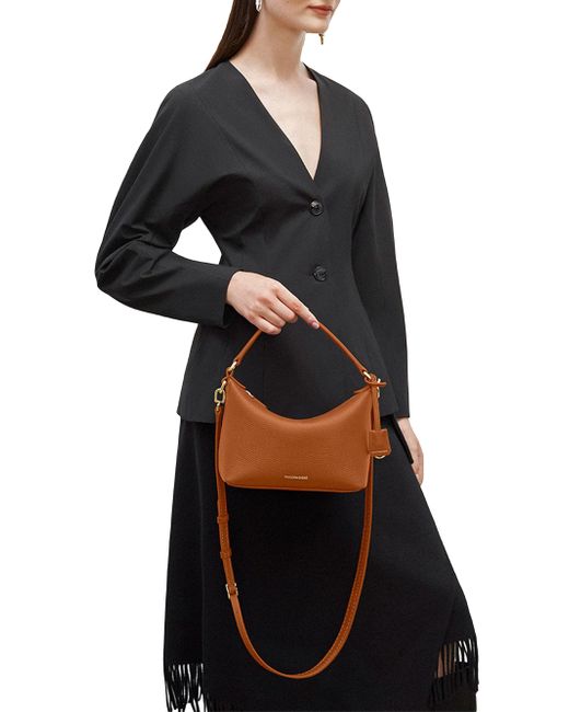 A soft, ultra-feminine companion perfected for elegant day-to-night exploration. Celebrating the world's most exceptional craftsmanship, the full-grain leather construction flows with gentle curves, a semi-structured base for enhanced access, internal zipped and priority card pockets and a dedicated high-shine hardware to attach your signature Charm collection. Carry it comfortably in hand with a short padded handle or gently across the body with a detachable leather strap for a timeless style statement. Crafted entirely from responsibly sourced leather Soft and slouchy construction Short carry handle with padding for all-day comfort Arrives with detachable and adjustable leather shoulder strap Full-length, ultra-smooth brass zipper for secure closure In-hand or crossbody styling Finished with ultra-polished gold accent hardware One full-length zipped interior pocket One interior card pocket with two card slots Premium cotton twill lining Arrives with premium dust bag Made in Australia Dimensions: H: 5.8" x W: 8.25" x D: 3.7" Carry handle bag drop: 5.3" Crossbody strap drop adjustable from 19.3" to 24.8". Lsd Handbags - Handbag/accessories Lsd > Maison De Sabre > Saks Fifth Avenue > Barneys. Maison de Sabre. Color: Pecan Brown.