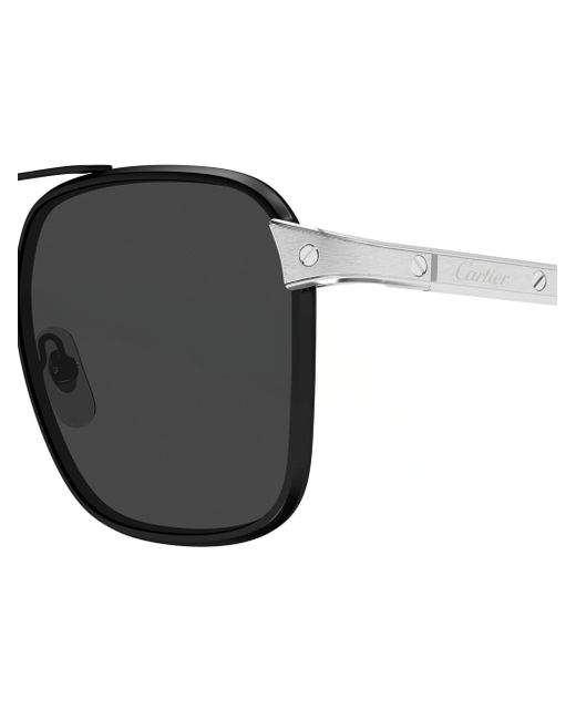 From the Clash De Cartier Collection. These platinum-plated metal sunglasses are elegantly crafted, featuring a rimless rectangular silhouette that exemplifies the house's dedication to luxurious design and expert craftsmanship. 100% UV protection Solid lenses Adjustable nose pads Includes case and cleaning cloth Metal Made in France SIZE 58mm lens width 16mm bridge width 140mm temple length Please note: Lens replacement is non-optional. Soft Accessories - Men Sunglasses > Cartier > Saks Fifth Avenue > Barneys. Cartier. Color: Silver Grey.