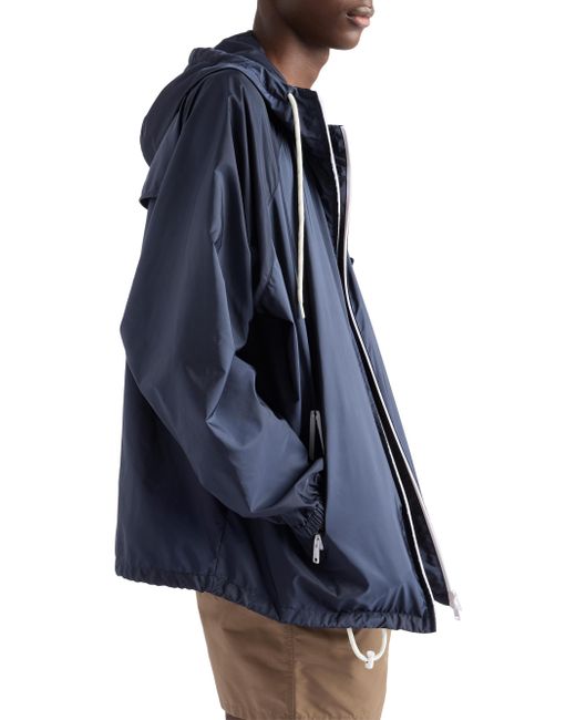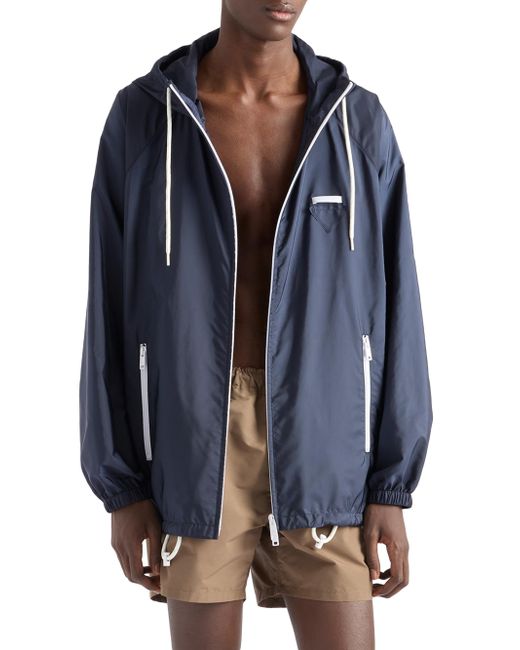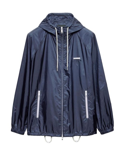 Oversized fit Hooded collar with drawstring Raglan sleeve Zipper closure Visible zipper pockets Elasticized cuffs Wide shoulder Elasticized drawstring hem Unlined Fabric triangle logo and sartorial logo label Imported 100% Recycled polyamide. Lsd Rtw - Prada Rtw > Prada > Saks Fifth Avenue > Barneys. Prada. Color: Blue. Size: Medium.