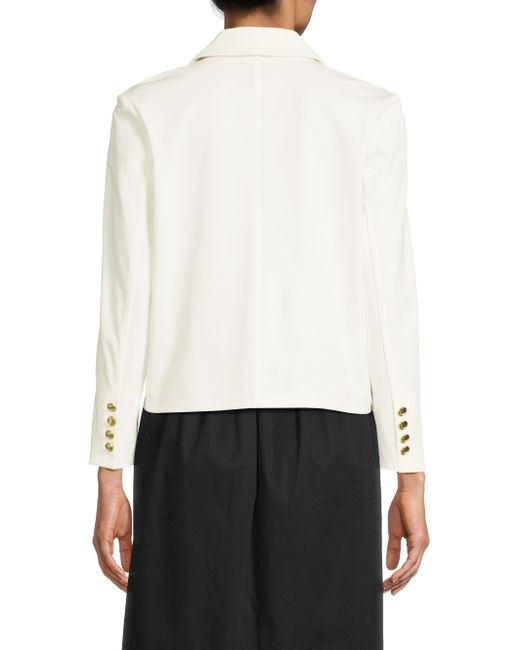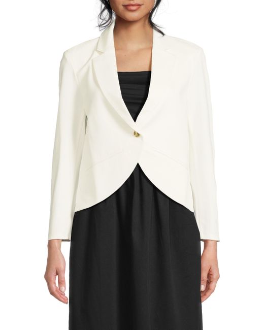 The Heat single-breasted jacket from Capsule 121 is crafted of stretch fabric and designed with one-button closure. Notch lapels Long sleeves, button cuffs Cutaway front hem One-button closure 54% rayon/40% nylon/6% spandex Machine wash Imported SIZE & FIT About 16" from shoulder to hem Model measurements: 5'10" tall Model is wearing a US size Small. Modern Collections - Branded Separates > Capsule 121 > Saks Fifth Avenue > Barneys. Capsule 121. Color: Ivory. Size: XS.