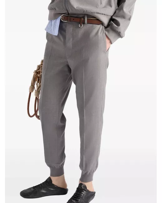 grigio cenere chiusura con occhiello e zip due tasche laterali a filetto due tasche posteriori a filetto logo a triangolo