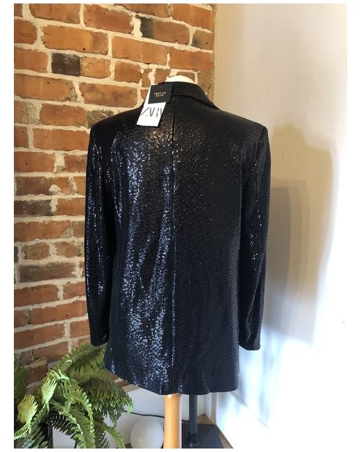 ZARA Black sequin flowing long sleeve blazer with lapel collar and pronounced shoulders. Featuring front flap pockets and front fastening. Colour: BLACK - sequin Outer shell: Polyester + Elastane Lining: Polyester + Viscose Size: SMALL BNWT **These jackets are a generous size, its ‘flowing’ style so not fitted. I’m a 10 on top and wear the small) hope this helps*** Please check out my other items for sale. I'm a personal shopper / stylist and always selling. Most of my items are highly sought after and have often sold out. I purchase 2 of some items in different sizes for my customers so I quite often have 1 left over. Any questions please get in touch. The item will be sent recorded.