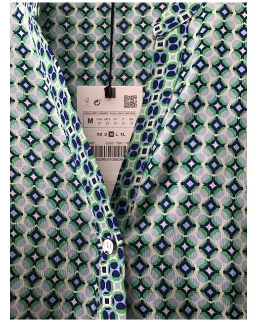 Zara geometric print blouse with silver tone buttons to front and cuffs. Pit to pit is 18”.