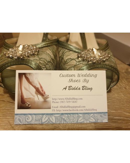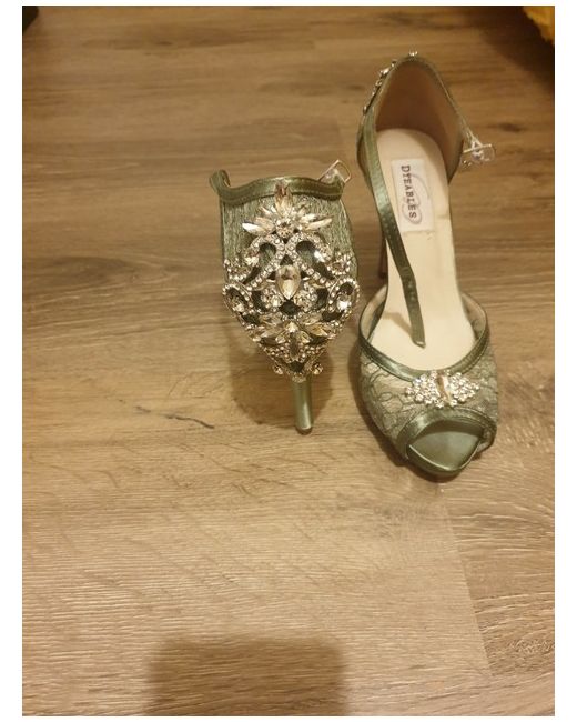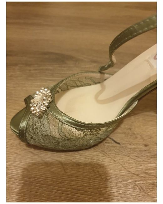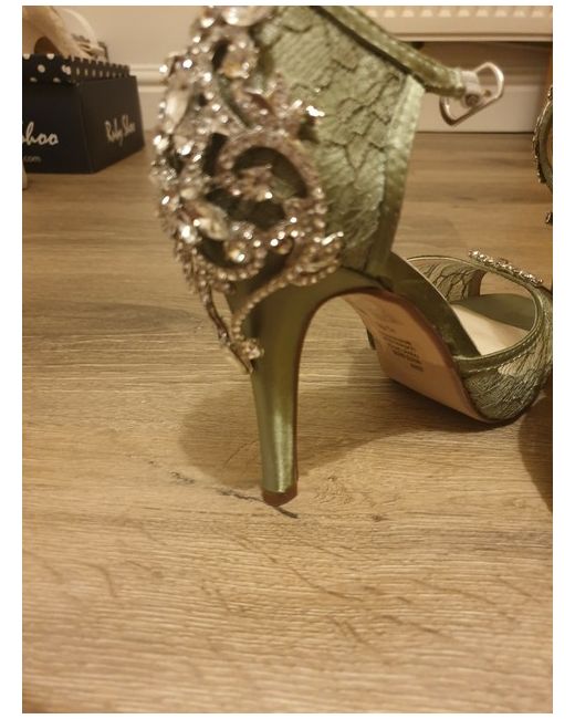 Handmade Wedding Shoes size UK 4. Stunning sage green with diamanté detail to the heel and toe. The heel is 4 inches.Never been warn, brand new with box