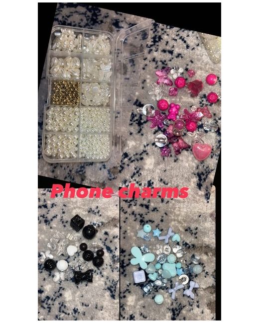 I make these phone charms you have an option of… white, pink,black and white or blue I can also add a name if wanted… I will upload photos of the colour options