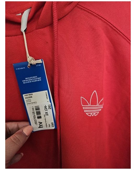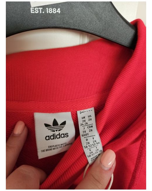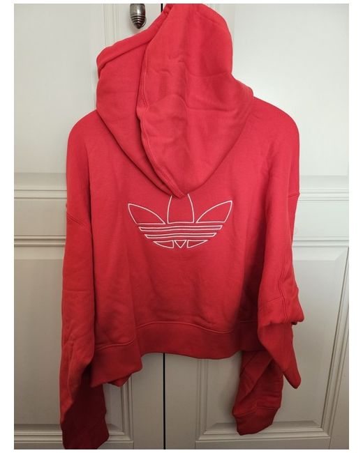 Red Adidas hoodie with large rubber motif on the back ans smaller one on the chest. It is slightly cropped, so sits on the waist. Lovely soft material, perfect for the New Year!