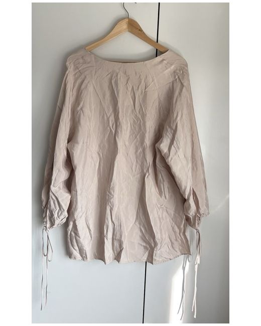 This H&M tunic top is a stylish and comfortable addition to any wardrobe. With a flattering V-neckline and long sleeves, it's perfect for both casual and formal occasions. The pullover closure ensures a seamless look and the blend of polyester and viscose materials make it a great choice for summer and spring wear. The beige colour of this blouse is versatile and easy to pair with other clothing items. It is a size M and follows a regular size type. The brand H&M is known for its trendy and affordable clothing. This top is a must-have for any fashion-forward woman.