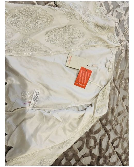 Never been worn New with tags Exactly as in photos Off white colour Elevate your winter wardrobe with this stunning ivory overcoat from Monsoon. Crafted from 100% silk, this coat exudes beautiful beads and sequins work all over the coat. The coat is designed for women, with a regular size type and fits perfectly with a size 8. The brand Monsoon is known for its quality and this coat is no exception, making it a great addition to your collection. The coat features a classic overcoat style and is perfect for any occasion.
