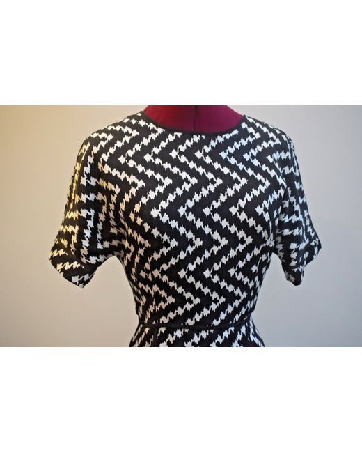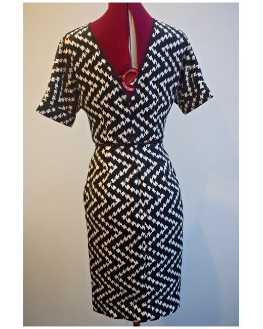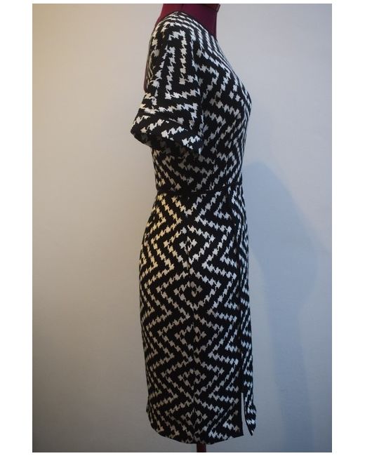 A shift tailored dress from Warehouse in size S, in a black & white chevron / zig zag / geometric print. New, never worn. Featuring slim black trim detailing, two splits in front and V-cut at the back (not too deep so the bra is covered). Long zip fastening. Fully lined. Note that the length has been professionally shortened to be just above the knee.