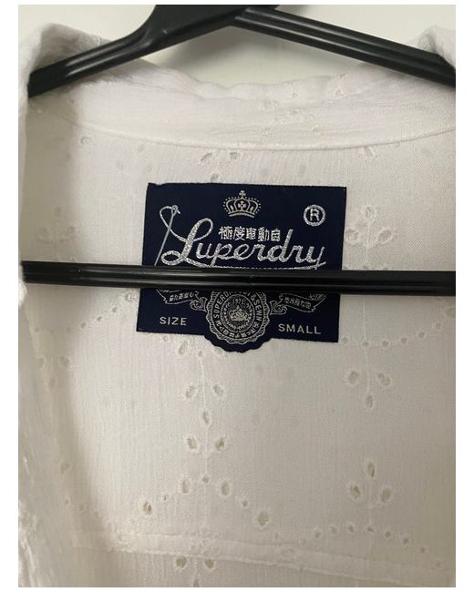 Superdry White Eyelet Embroidered Button-Down Blouse Shirt with Adjustable Sleeves Size Small This stylish white blouse from Superdry features delicate embroidered eyelet detailing, adding a touch of elegance to your wardrobe.