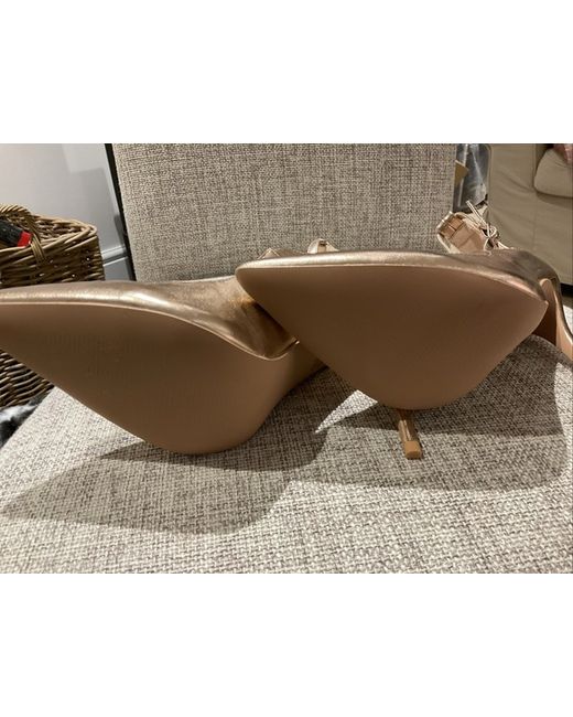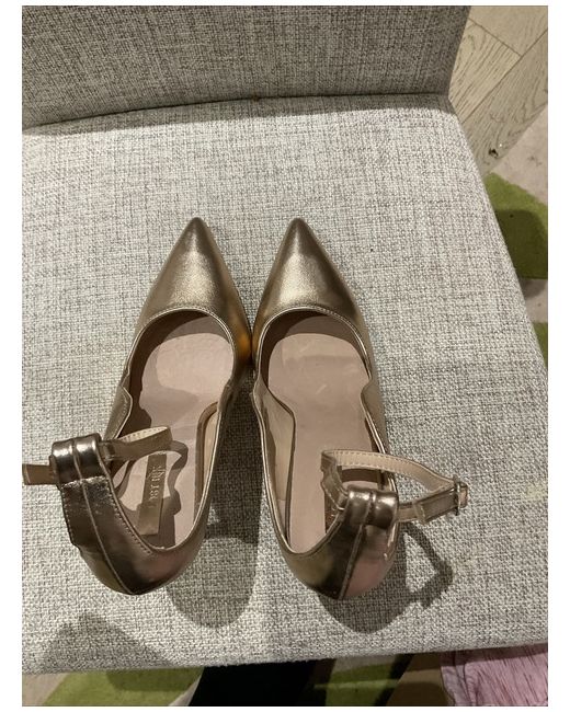 Elevate your shoe game with these stunning lost ink high heels in size 5. The gold faux leather upper material paired with the stilleto style makes for a chic and glamorous addition to any outfit. These heels are perfect for any occasion, from formal events to a night out with friends. The brand is high and the department is women, making it a great choice for anyone looking to add a touch of sophistication to their shoe collection. Don't miss out on this stylish and comfortable pair of heels.