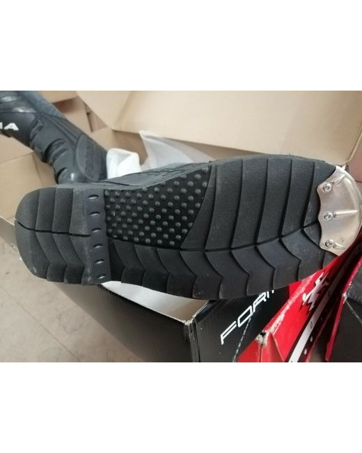 High performance motorcycle boots made in Italy. Synthetic material upper. Personalized rubber heat protector. Padded inner lining. Steel toe cap.