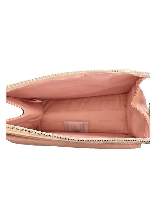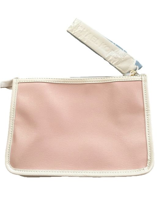 Genuine new MK makeup bag with MK logo wristlet and inner logo lining. Light pink with PVC beige trim. Zip top fastening and one outer pocket with press stud fastening. Dimensions - 9” W, 6” H, 3” D Wipe clean with damp cloth.
