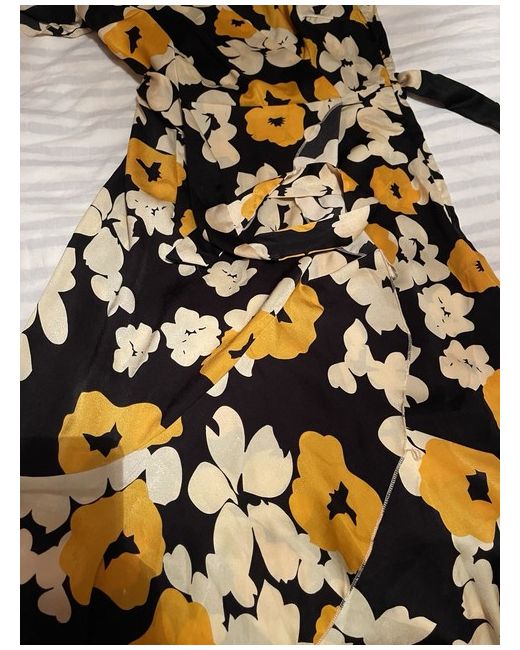 It’s a vibrant wrap dress, the size come as small fit so size 10 recommended for ladies who wear 8. The dress has floaty bottom and asymmetrical design with a front split.