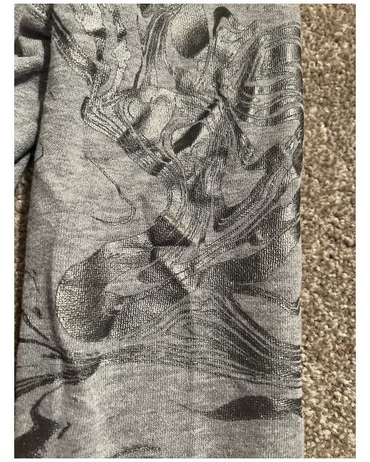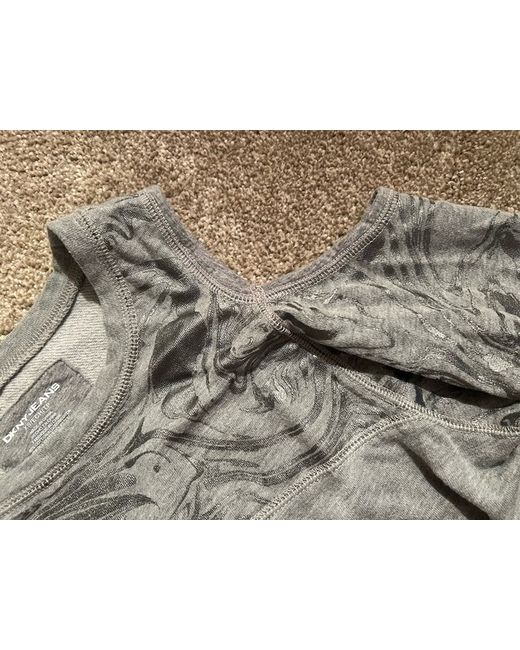Elevate your wardrobe with this stylish DKNY top, perfect for any occasion. It features a round neckline and casual sleeves with a marbled pattern that adds a touch of classic art to your outfit. The reflective cutout and silver character accents make it a limited edition piece that is perfect for sports, travel, or casual wear. This grey top in size XS is made of a comfortable knit fabric blend of polyester and cotton. It has a pullover closure and is hand wash only. Whether it's for autumn, winter, or spring, this jersey style top is perfect for women who want to look stylish and on-trend without compromising comfort.