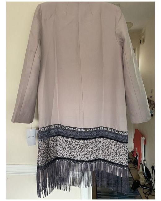 Introducing a stunning lilac beaded jacket from the brand Kaleidoscope. This jacket features a long coat with a regular fit, ideal for any occasion whether it be a party or a business meeting. The jacket is made from polyester and is fully lined with a polyester lining material. It's perfect for any season, whether it be autumn, winter, summer or spring. The jacket has long sleeves and is accented with beautiful beading and tassels. This basic jacket is a must-have for any wardrobe and is available in size 12. Don't miss out on the chance to add this gorgeous piece to your collection.