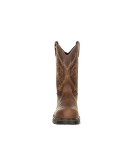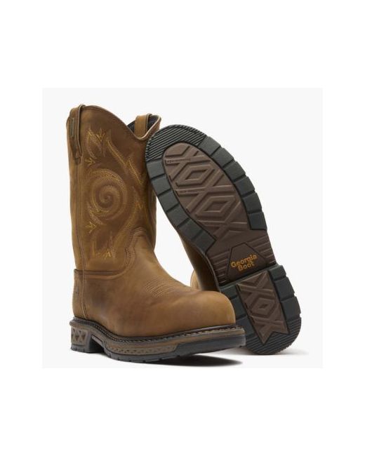 A western look with a work application. The Georgia Boot Carbo-Tec Lt composite toe waterproof wellington features a subtle western stitched leather upper with a tough as nails outsole. Leather pull loops, a heel-stabilizing Counter Lock system and a rear zipper and gusset combo provide the ultimate easy-on, easy-off experience for this western work boot. Equipped with an Ergo-Fit composite toe cap, this round toe western work boot meets the Astm F2413 protective toe and electrical hazard standards for footwear. The inside of this pull on work boot is lined in high performance mesh and is armed with the Georgia Waterproof System, guaranteed to keep your feet dry against water and muck when working in wet conditions. Also found inside is a removable Quick Response polyurethane insole. It absorbs shock as you walk and bounces back to its original form for all day support and comfort. The Carbo-Tec Lt outsole is built for ultimate durability and keeps this boot incredibly lightweight.