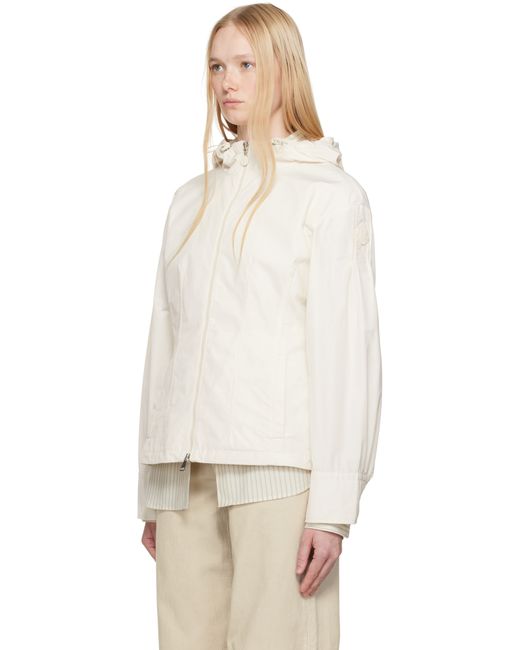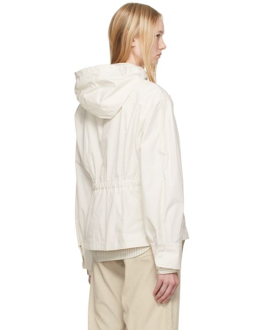 Polyester- and cotton-blend taffeta jacket. · Bungee-style drawstring at hood · Stand collar · Two-way zip closure · Welt pockets · Darts at front · Gathering at sleeves · Embroidered logo patch at sleeve · Buttoned barrel cuffs · Elasticized trim at back waist · Fully lined Supplier color: White