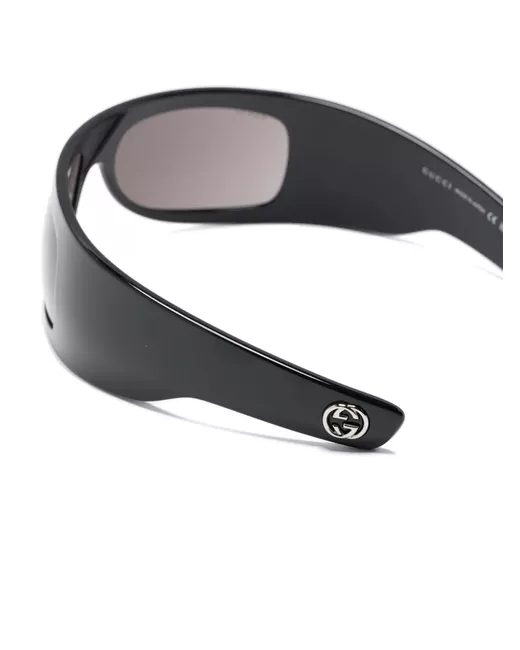 black rectangle frame grey tinted lenses UV-protective lenses logo plaque at the arm sculpted arms straight tips These glasses come with a protective case.