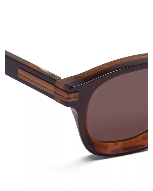 Marrone, design trasparente, fantasia effetto marmo, logo in lettere color oro, lenti colorate, montatura tonda, aste dritte e aste con punta curva. Questi occhiali sono forniti con una custodia protettiva.