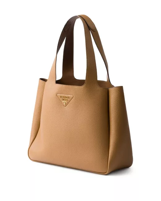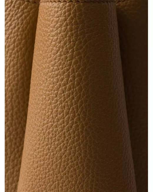 caramel brown concealed magnetic fastening two flat top handles partitioned compartment This piece comes complete with a protective dust bag.