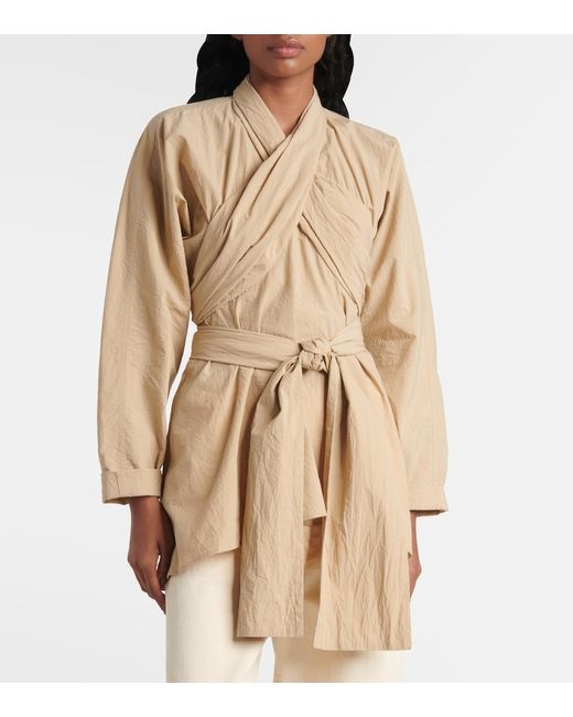 Materiale: 100% cotone. Trattamento: lavaggio in lavatrice a 30°. Made in Romania. Colore del designer: Natural Beige. Colore dell'articolo: beige. Chiusura: abbottonatura sul retro. Cintura annodabile. Cotone.