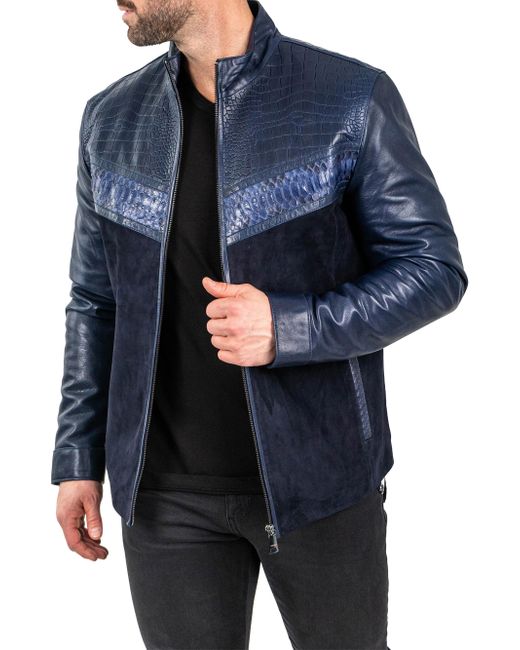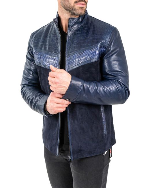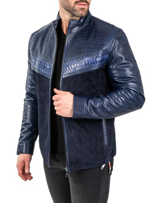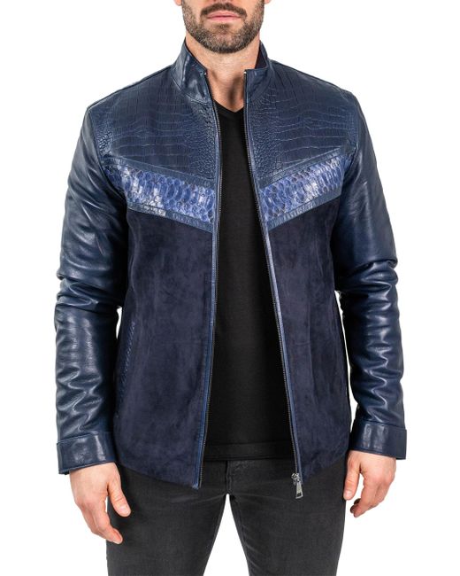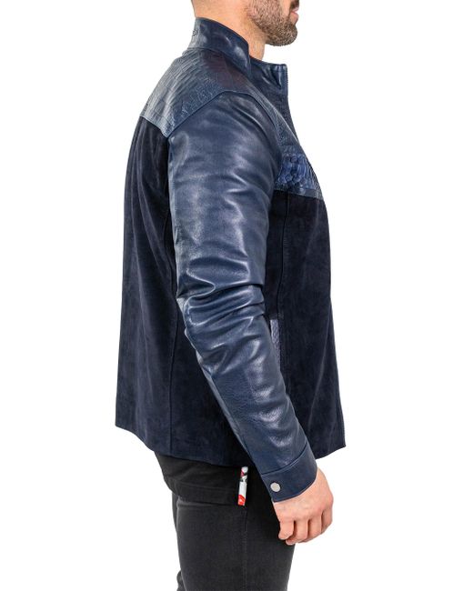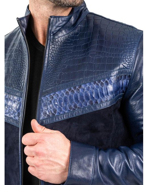 Leather Python Shield Jacket Medium da Men di colore Blu