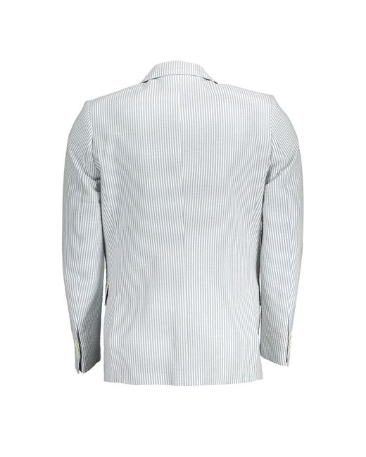 Elevate your wardrobe with the sleek sophistication of Gant’s classic long sleeve jacket. Exemplary of refined tailoring, this jacket boasts a neat 2-button closure, paired with both functional and decorative pockets—two side pockets for essentials, one external chest pocket to add a touch of elegance, and three internal pockets for your personal items. Its distinctive Gant logo subtly stamps a mark of luxury on the crisp white hue. Crafted with a versatile blend of cotton, lyocell, and polyamide, it’s designed to deliver both comfort and durability. Made with pride in Romania, this jacket is a seamless blend of elegance and practicality. Color: White Material: Cotton, Lyocell, Polyamide Country of Origin: RO