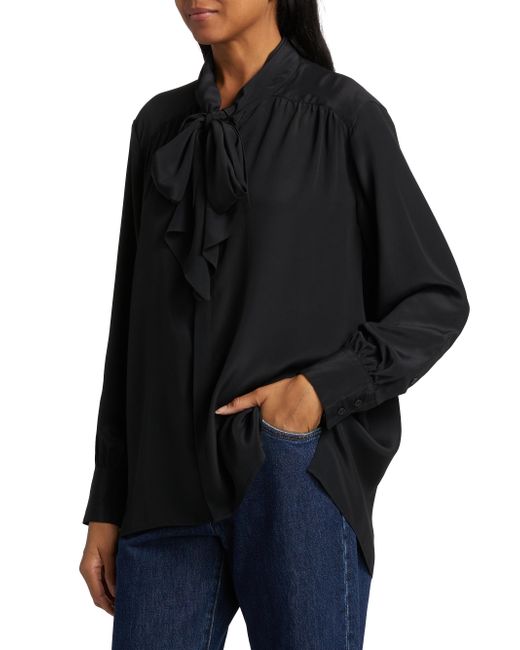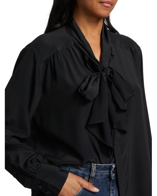 Tailored in a relaxed silhouette, BLK DNM's Blouse 06 features an elegant Lavallère tie collar, long puff sleeves with double-button cuffs, and gathers at the back and shoulders for added volume. Lavallière tie collar Long puff sleeves, double-button cuffs Button-front closure 75% acetate/25% silk Dry clean Made in Portugal SIZE & FIT Model measurements: 5'10" tall Model is wearing a US size 4. Contemporary Sportswear - Denim And Bottoms > Blk Dnm > Saks Fifth Avenue > Barneys. BLK DNM. Color: Black. Size: 0.