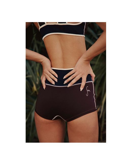 Ready for anything in a retro-inspired design, these effortlessly essential surf shorts are featured in a high-rise silhouette with colorful striping throughout and full bottom coverage for the perfect functional finish. Seea Darla Surf Shorts at Free People in Cappuccino/Black, Size: Small