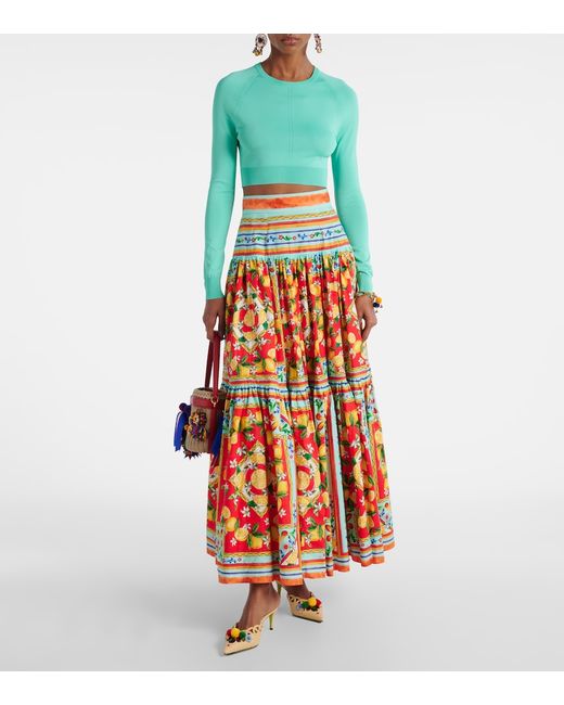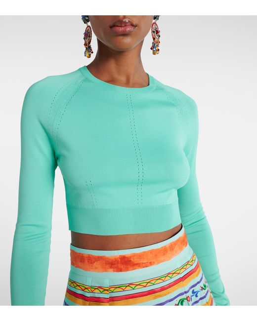 Materiale: 50% rayon, 37% nylon, 13% elastan. Trattamento: lavaggio a secco. Made in Italy. Colore del designer: Medium Peacock Green. Colore dell'articolo: verde. Lunghezza: cropped. Maniche: corte. Polsini: a coste. Orlo: a coste. Collo: scollo rotondo.