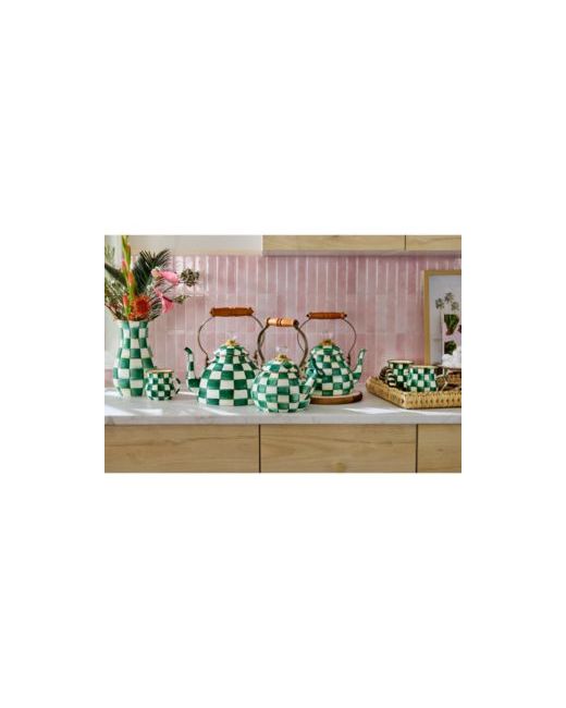 Hearty and handy, Mackenzie-Childs' handsome Emerald Check Mug is perfect for a cup of hot chocolate or calming tea. Similar in theme to the signature Courtly Check enamel pattern, Emerald Check features a heavy-gauge, hand-glazed steel underbody that's rimmed in bronzed stainless steel and decorated with hand-painted Emerald Checks.