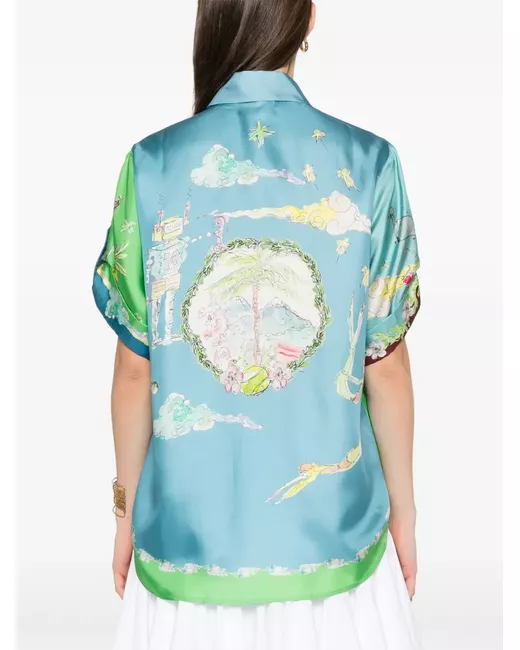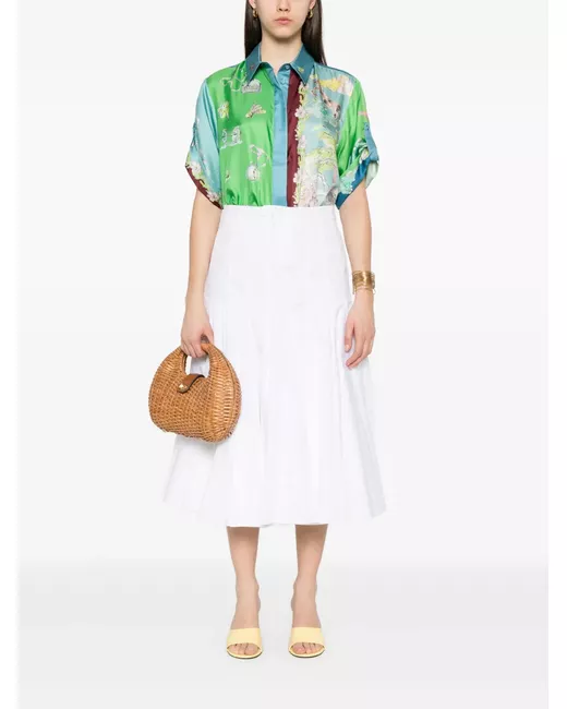 verde mela abbottonatura frontale nascosta colletto classico maniche corte stampa con motivo