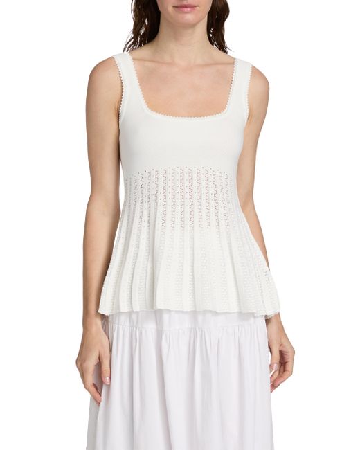 Staud's Ellen top features a scoopneck framed by fixed straps, a pleated lace body, and picot trimming. Scoopneck Fixed straps Pulls over Viscose/nylon Dry clean Imported SIZE & FIt About 25" from shoulder to hem Model measurements: 5'10" tall Model is wearing a US size Small. Contemporary Sportswear - Contemporary Collections > Staud > Saks Fifth Avenue > Barneys. Staud. Color: Ivory. Size: XS.