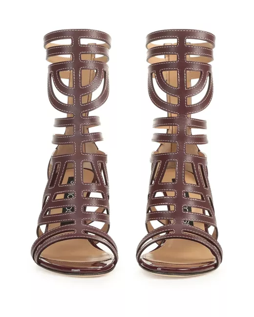 dark red rear zip fastening cut-out detailing open toe stiletto heel