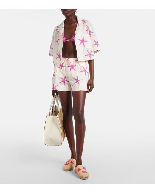 Materiale: 100% cotone. Trattamento: non lavare in acqua. Made in Italy. Colore del designer: Avorio/Pink PP. Chiusura: abbottonatura frontale. Cotone.
