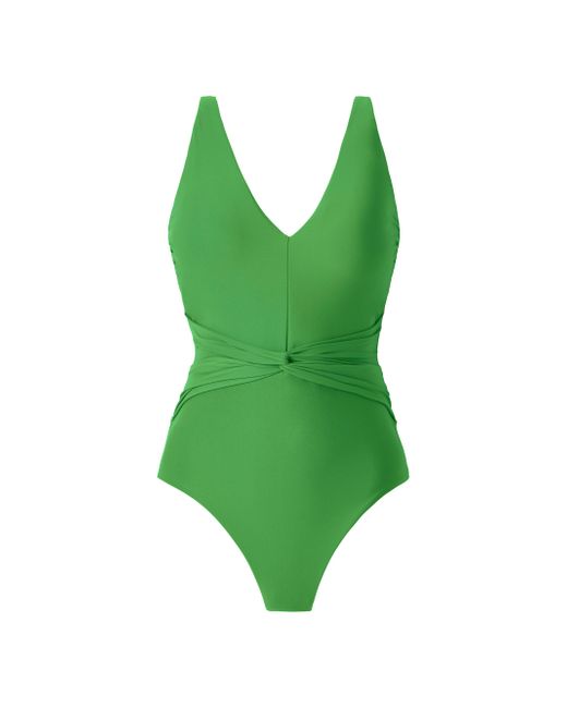 From the Solid Collection. This Esti one-piece swimsuit from Magicsuit features a plunging V-neck and a twist detail at the waist. Plunging V-neck Sleeveless Waist twist detail Scoopback Full bottom coverage Pulls on 62% nylon/38% spandex Combo: 73% nylon/27% spandex Hand wash Imported. Outerwear And Swimwear - Modern Swim > Magicsuit > Saks Fifth Avenue > Barneys. Magicsuit. Color: Napier. Size: 8.