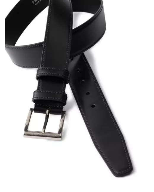 black polished silver-tone buckle multiple punch holes stitched detailing adjustable length